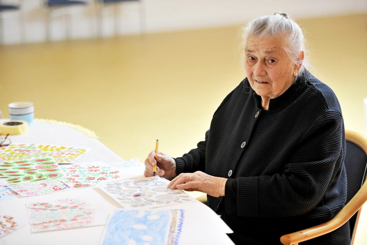 Od Svetoga Stipana krenula mi osamdeset deveta – upućuje nas baka Mara Debak kako joj se bliži devedeseta, dok razgledavamo što je to ona sve priredila za svoju prvu izložbu crteža “Moj vrt” u prostorijama Doma koji brine o starijima i nemoćnima, u općini Podstrana.