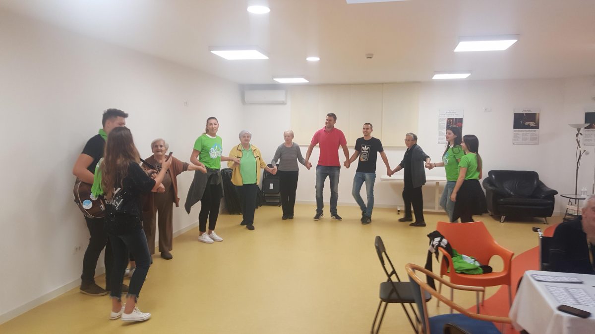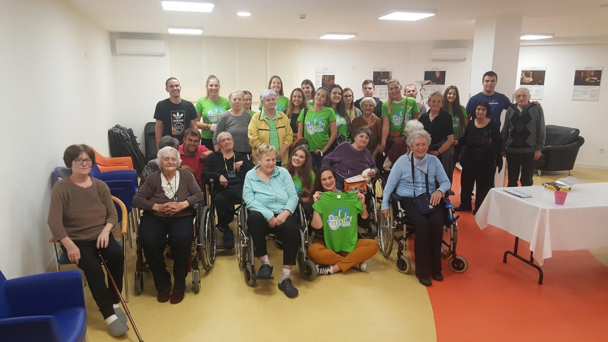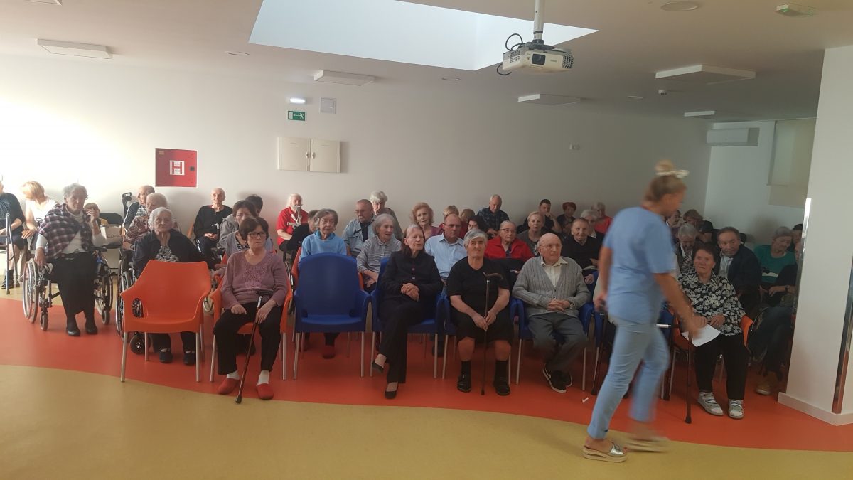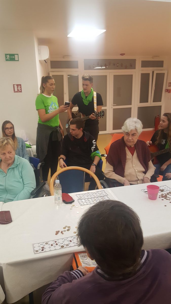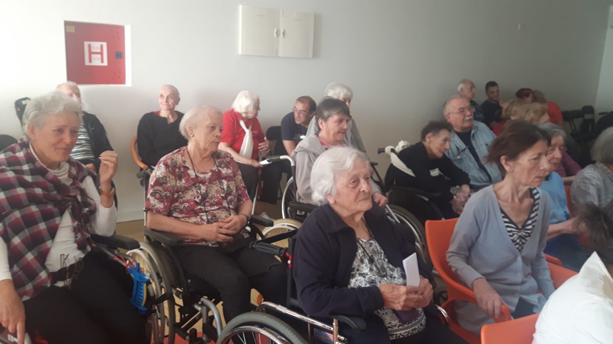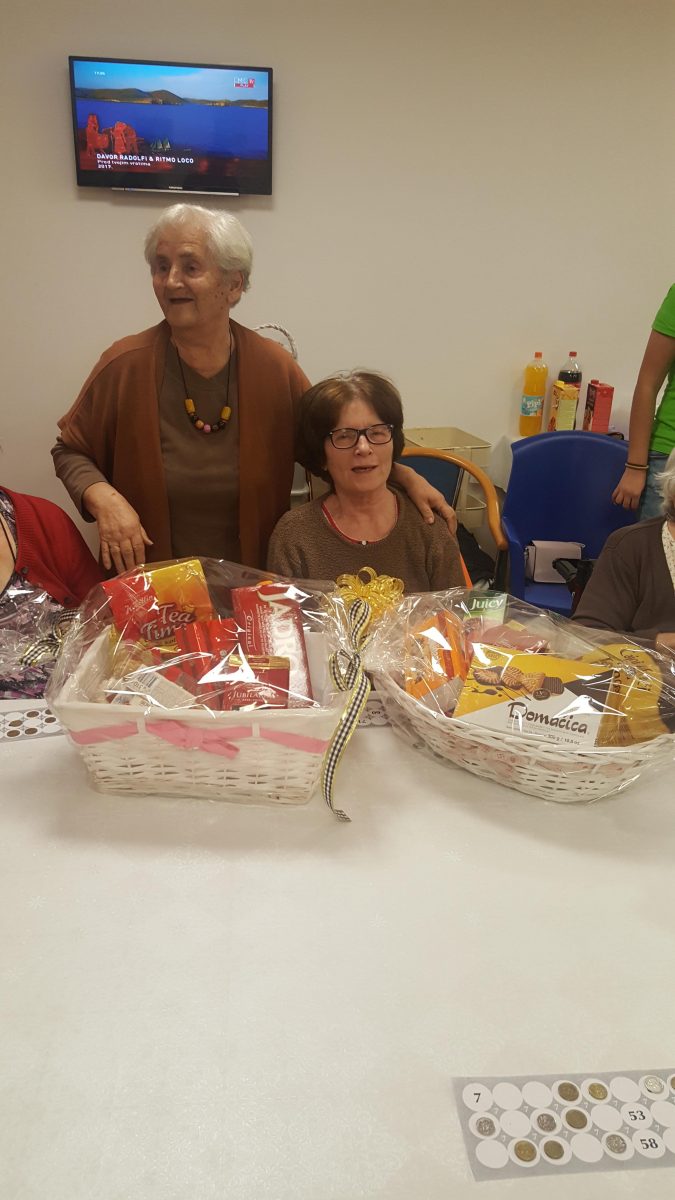 Pozvali smo volontere akcije ” 72sata bez kompromisa” da se duže s našim štićenicima, igraju i zapivaju! Akcija 72 sata bez kompromisa traje već 5 god zaredom. Odvija se kroz 11 država EU.Volonteri svake godine pomažu potrebitima. Ove godine se pituravaju kuće izgorene u Žrnovnici i obnavljaju koliko mogu, održavaju koncerte od čega novci idu oboljelima od leukemije i posjećuju 10ak obitelji siromašnih i nose im hranu i odjeću za djecu.S volonterima se igrala turbo tombola. Činkvinu je dobila Marica Vraničić, a tombolu Zorka Mustapić. Kasnije se zasvirala gitara i zaplivalo pa čak i kolo zaigralo! http://72sata.hr