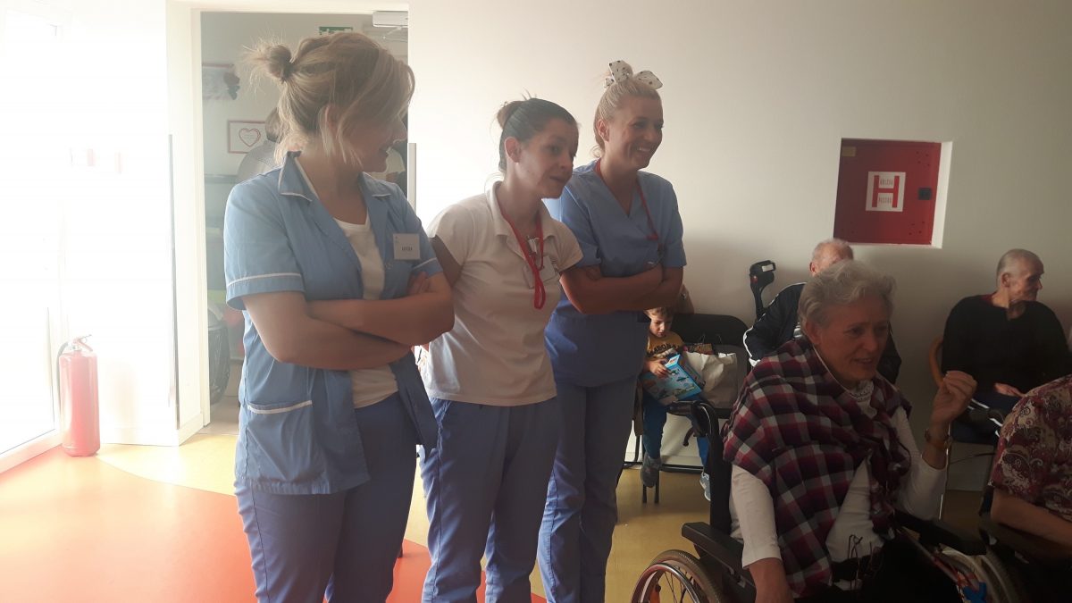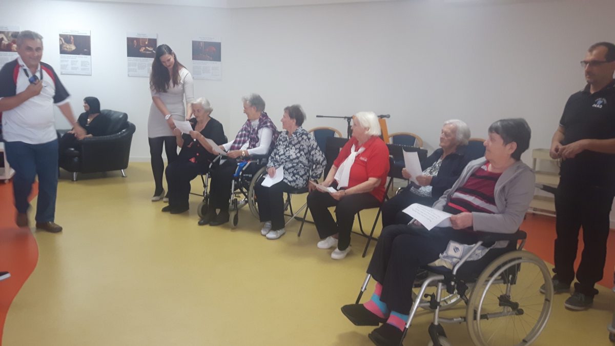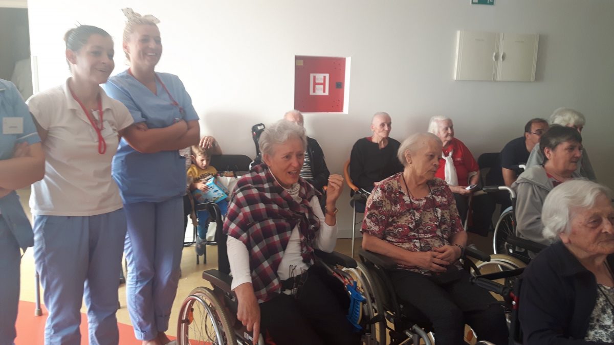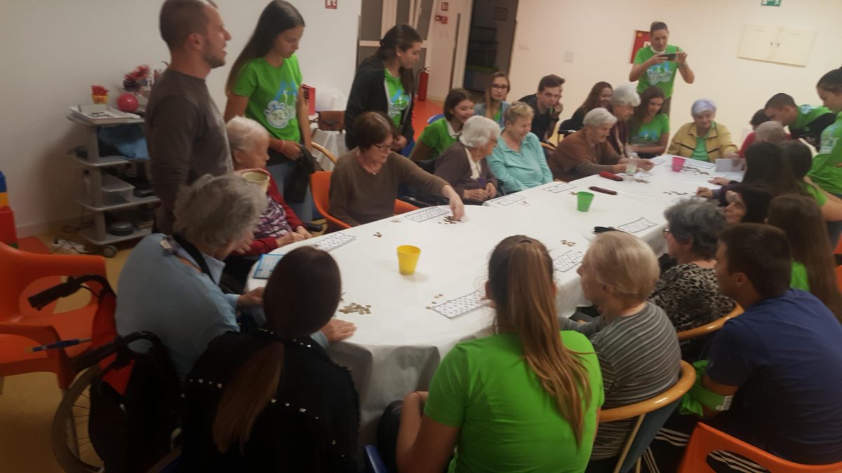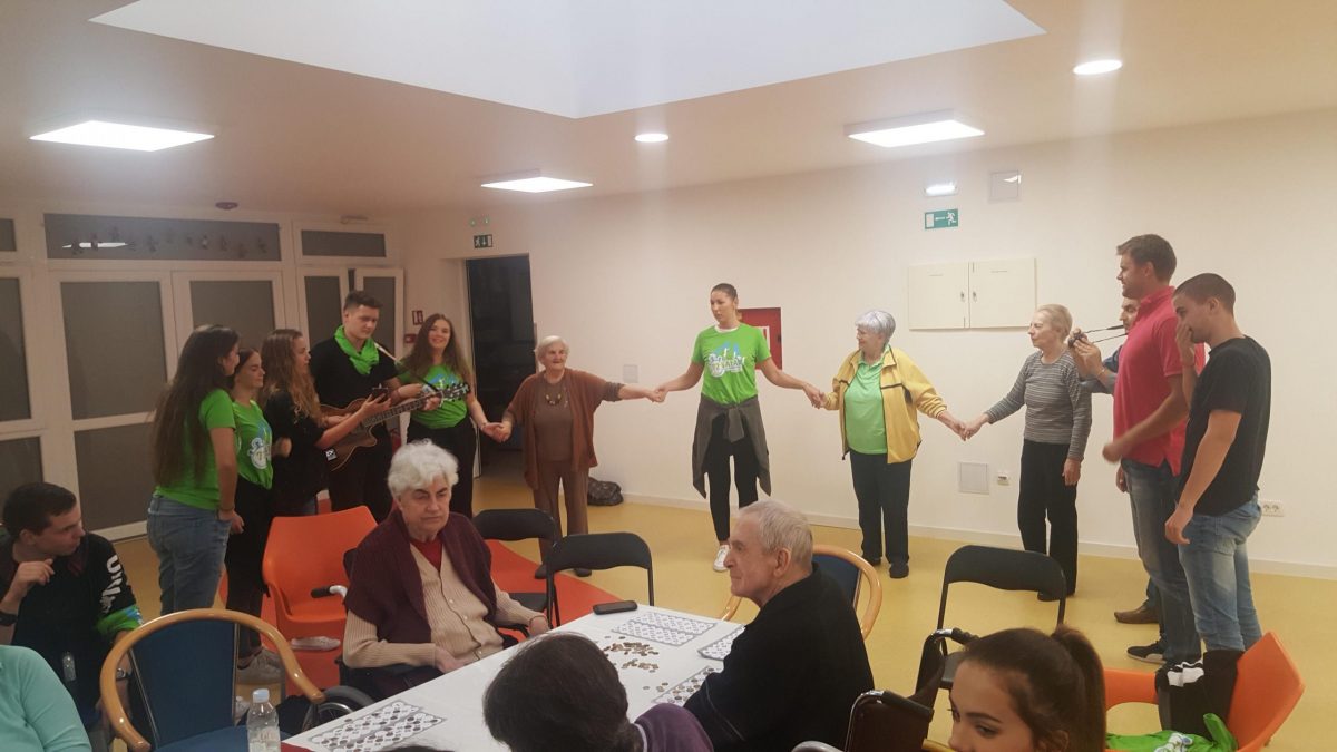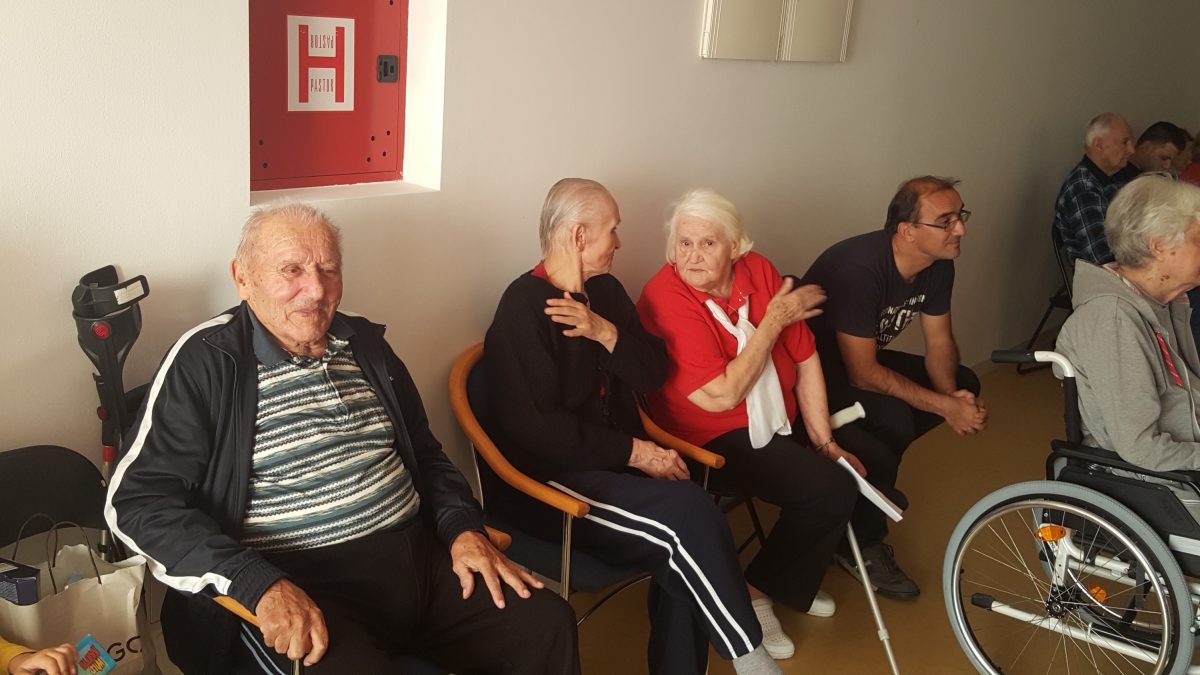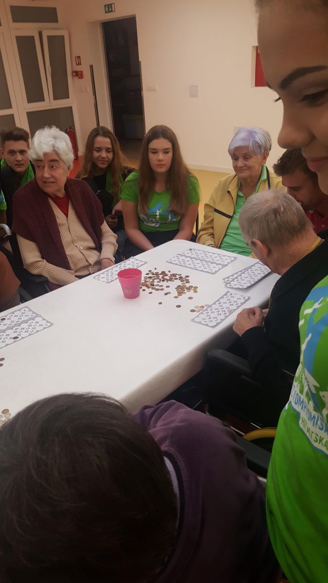 Pozvali smo volontere akcije ” 72sata bez kompromisa” da se duže s našim štićenicima, igraju i zapivaju! Akcija 72 sata bez kompromisa traje već 5 god zaredom. Odvija se kroz 11 država EU.Volonteri svake godine pomažu potrebitima. Ove godine se pituravaju kuće izgorene u Žrnovnici i obnavljaju koliko mogu, održavaju koncerte od čega novci idu oboljelima od leukemije i posjećuju 10ak obitelji siromašnih i nose im hranu i odjeću za djecu.S volonterima se igrala turbo tombola. Činkvinu je dobila Marica Vraničić, a tombolu Zorka Mustapić. Kasnije se zasvirala gitara i zaplivalo pa čak i kolo zaigralo! http://72sata.hr
