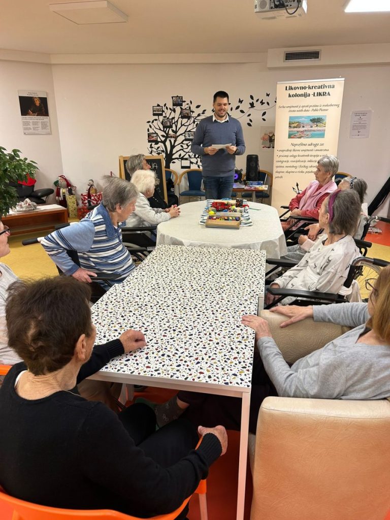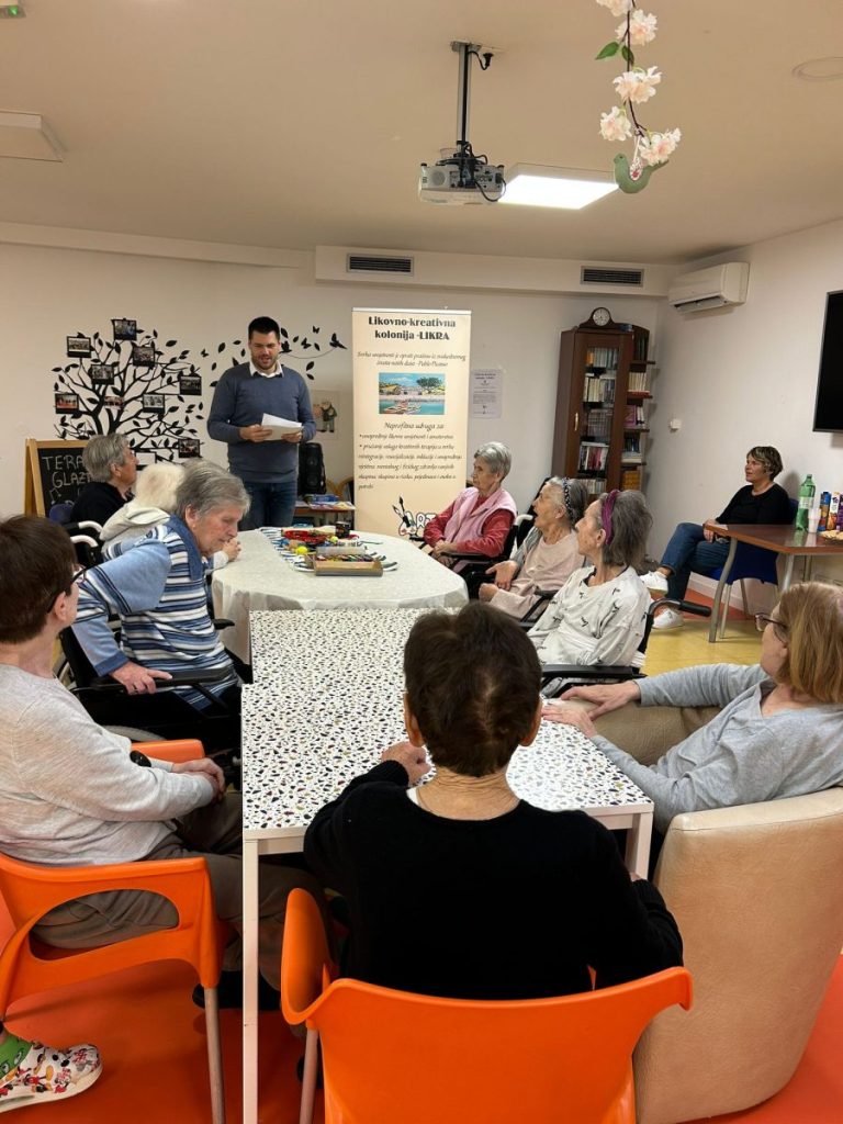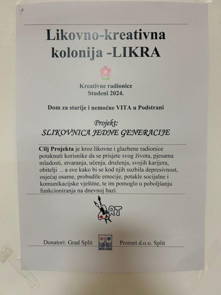 Fotografije Likovna i glazbena terapija Fotografije Zahvaljujemo se likovno-kreativnoj koloniji – LIKRA što su uljepšali naš dan i što su s nama sudjelovali na likovnoj i glazbenoj terapiji s korisnicima Doma Vita